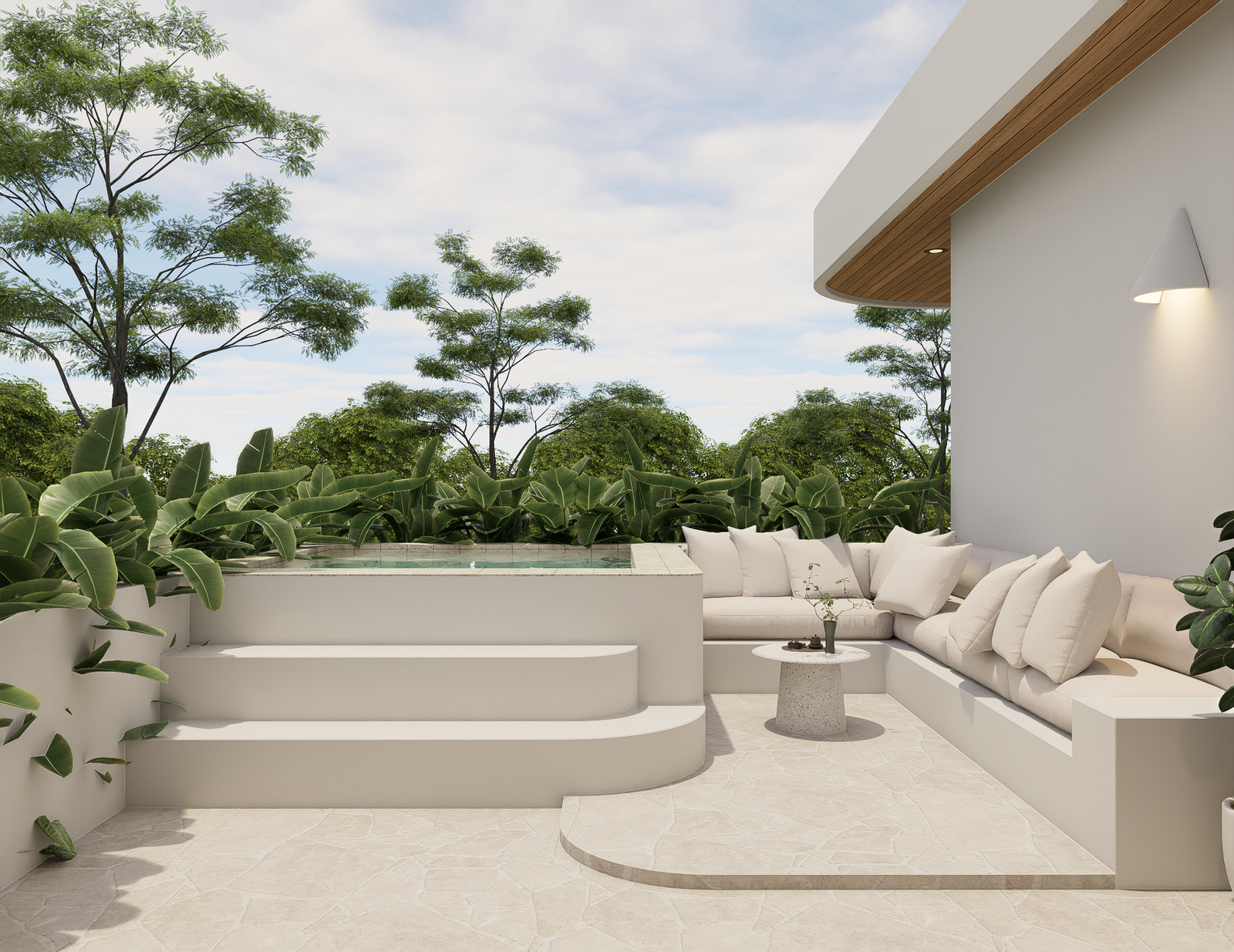 A minimalist Mediterranean design meets an elevated resort lifestyle, shaped by warm natural textures, finishes and spaces made for sun, rest, and privacy.
